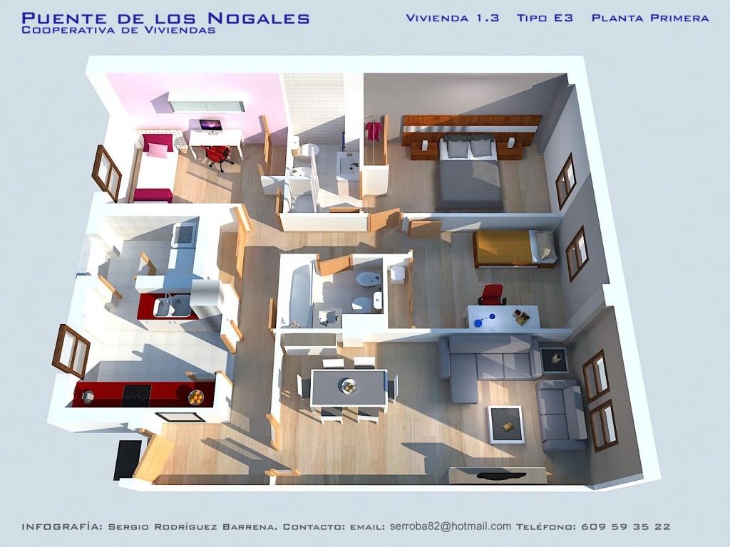 A continuación se presentan los distintos tipos de viviendas que formarán la Cooperativa de Viviendas Puente de los Nogales.